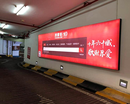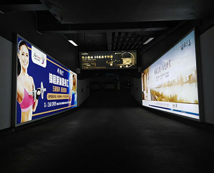 停車場室內(nèi)廣告拉布燈箱—該項目由我司提供鋁型材、LED燈、畫面以及技術(shù)安裝指導(dǎo)(不含安裝),全部燈箱都以墻面壁掛式展現(xiàn),燈箱安裝的完成的同時普通的停車場也升級形成了一道亮麗的廣告風(fēng)采!