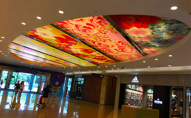 卡布軟膜燈箱不僅限于室內(nèi)壁掛式或是立式的廣告,也不限于正正規(guī)規(guī)的長方形或正方形,像這種商業(yè)類的天花軟膜燈箱現(xiàn)在也是裝飾裝潢的新形勢,特別創(chuàng)意的廣告可以快速吸引消費者眼球.